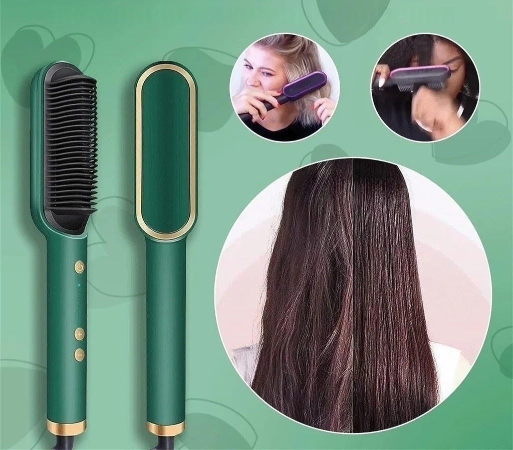 Escova multifuncional que alisa, modela e seca os cabelos. Prática e eficiente, compatível com qualquer voltagem.